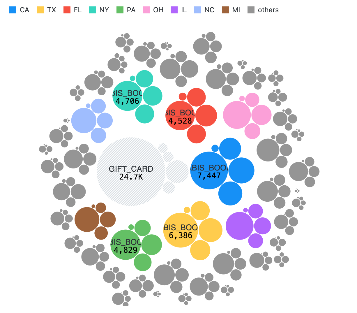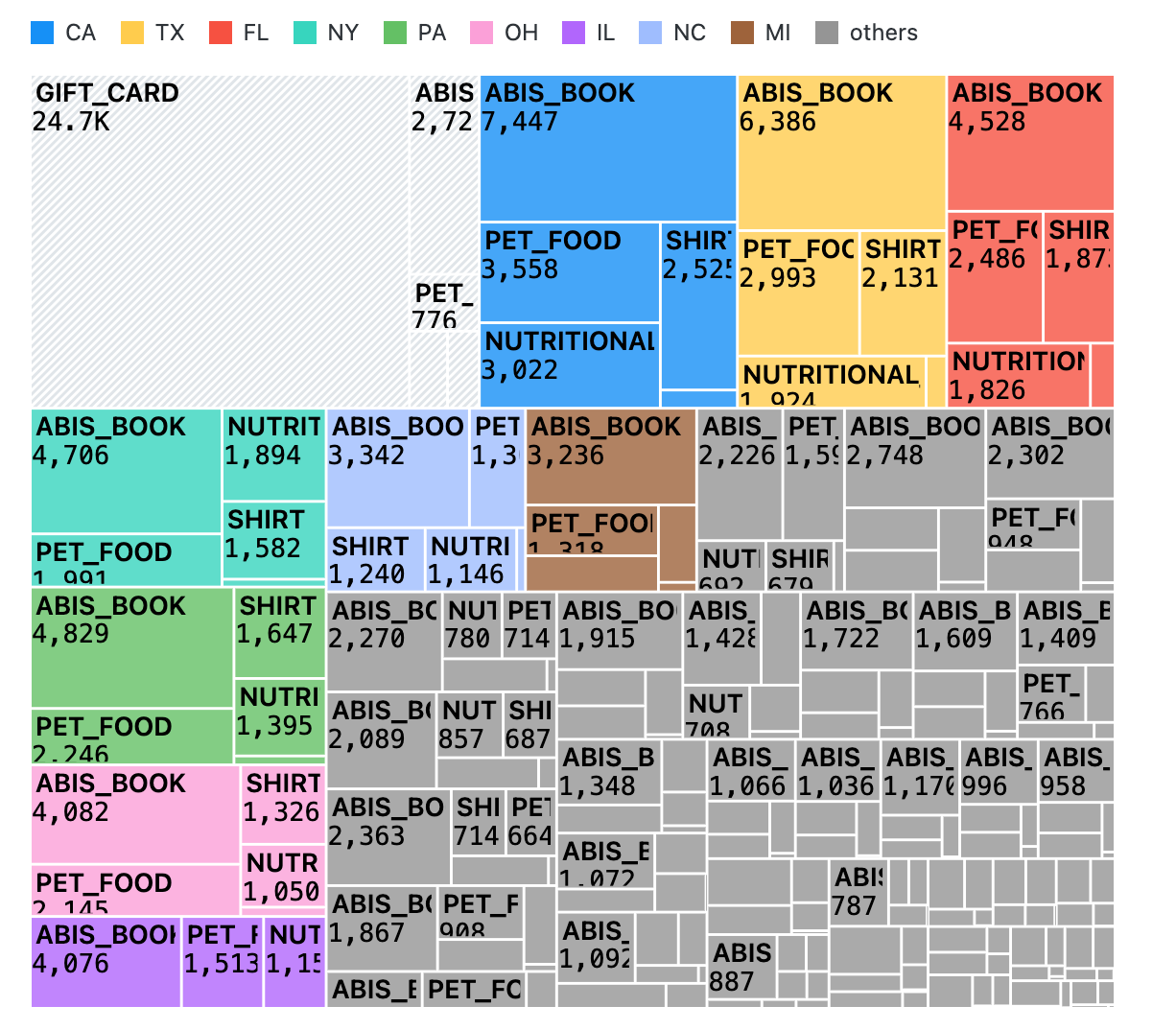 WHERE "SHIPPING_ADDRESS" = 'CA' OR "SHIPPING_ADDRESS" = 'NY'In the real version, … would show the SQL code for the input node. Notice that the selection in the chart (California and New York) has been converted into a WHERE clause.
